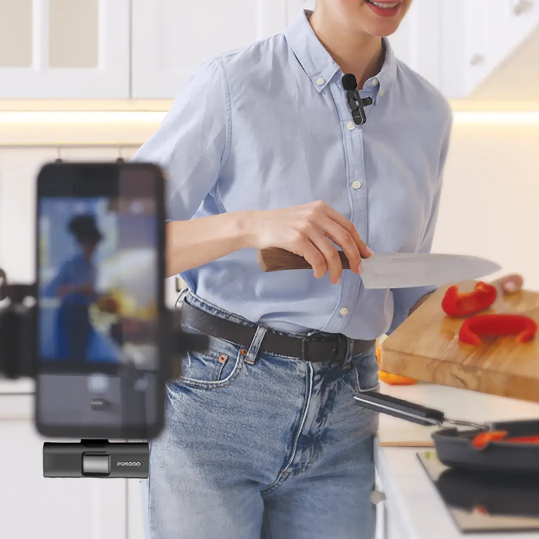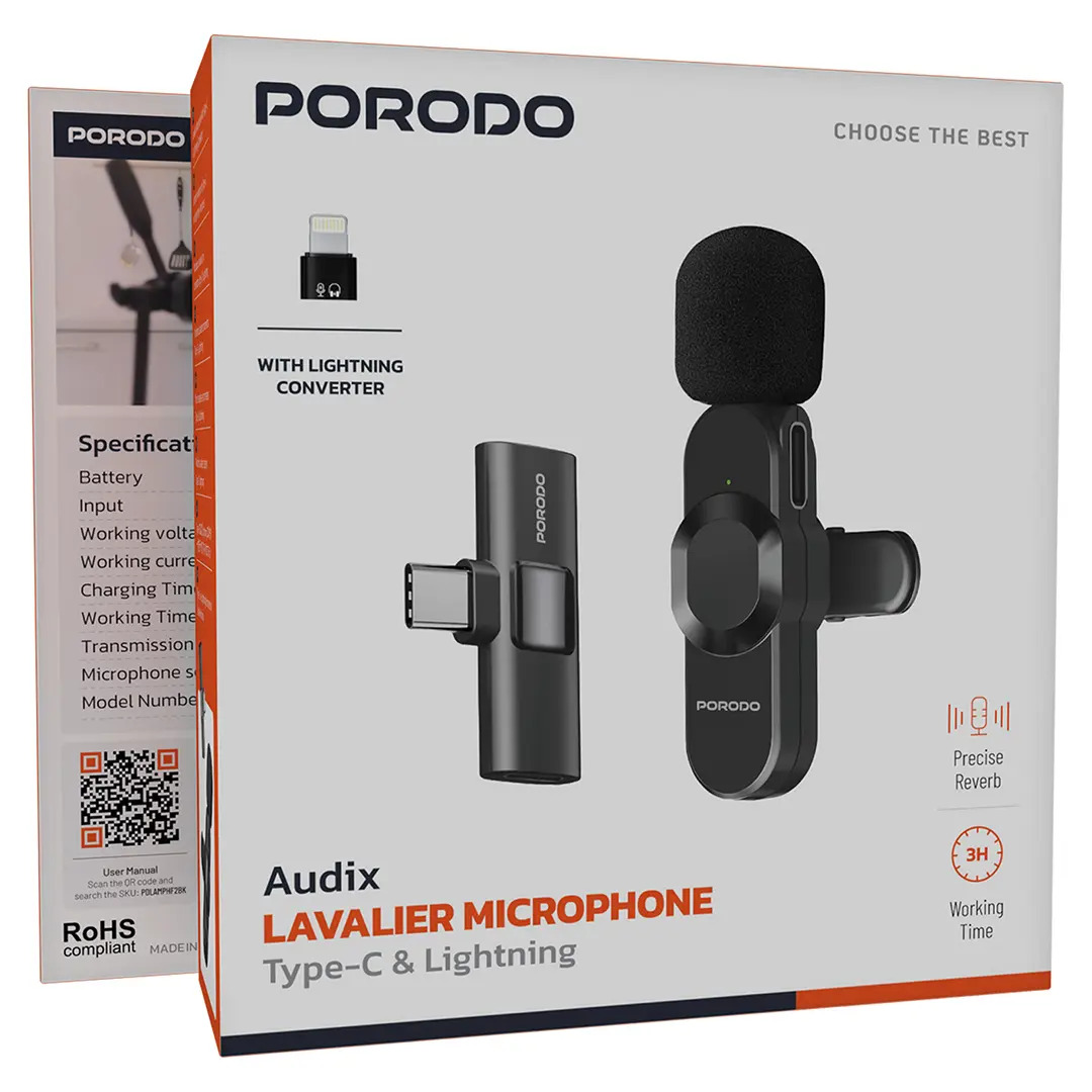 میکروفون یقهای پرودو اودیکس با درگاه تایپ-سی و لایتنینگ، یک تجربه صوتی عالی با ریورب واضح و متمایز برای شما فراهم میکند. با تنظیم بیسیم فوری و فناوری جفتسازی خودکار، این میکروفون بدون نیاز به هیچ گونه دخالت کاربری به دستگاه شما متصل میشود.